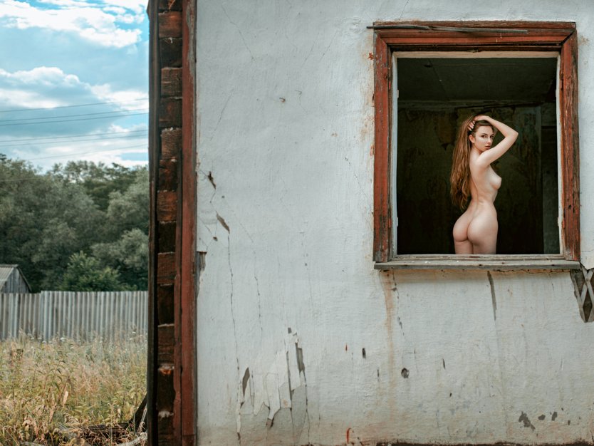 Голая женщина через окно