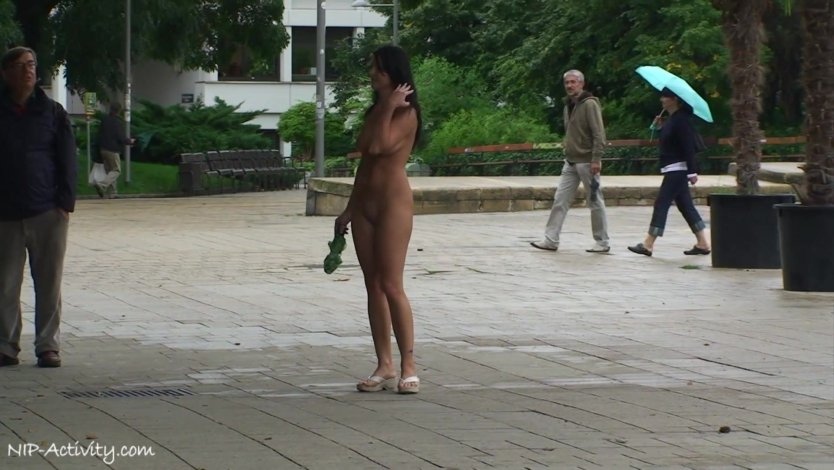 Голая на улице стесняется