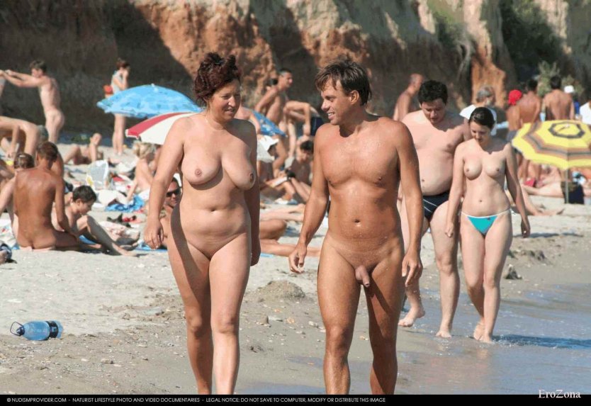Голые мужчины и женщины на пляже